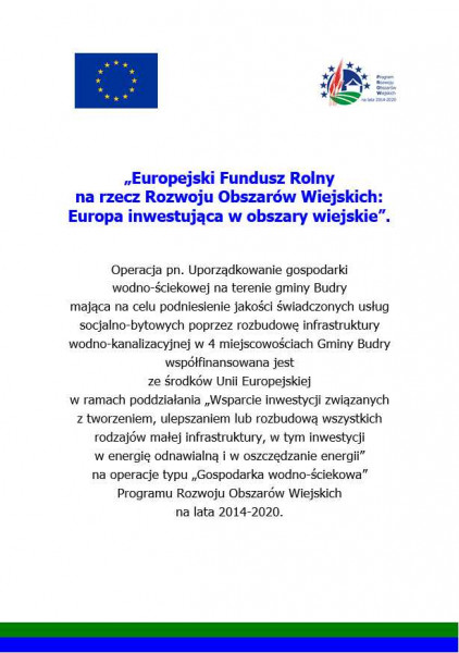 Gmina Budry realizuje w ramach Programu Rozwoju Obszarów Wiejskich na lata 2014 -2020 dla działania „Podstawowe usługi i odnowa wsi na obszarach wiejskich” następujące operacje: