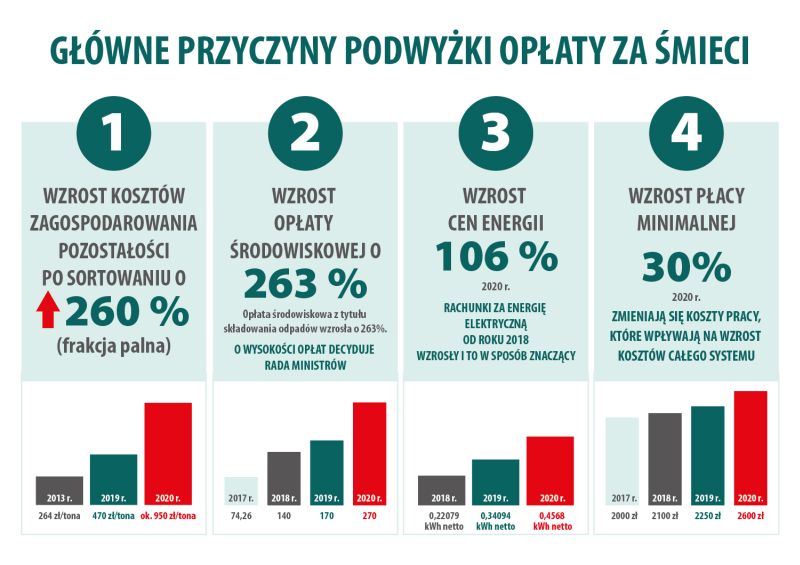 2. Wzrost kosztów składowania odpadów określonych w tzw. opłacie środowiskowej (ze 140 zł w 2018 r. do 270 zł w 2020 r.)