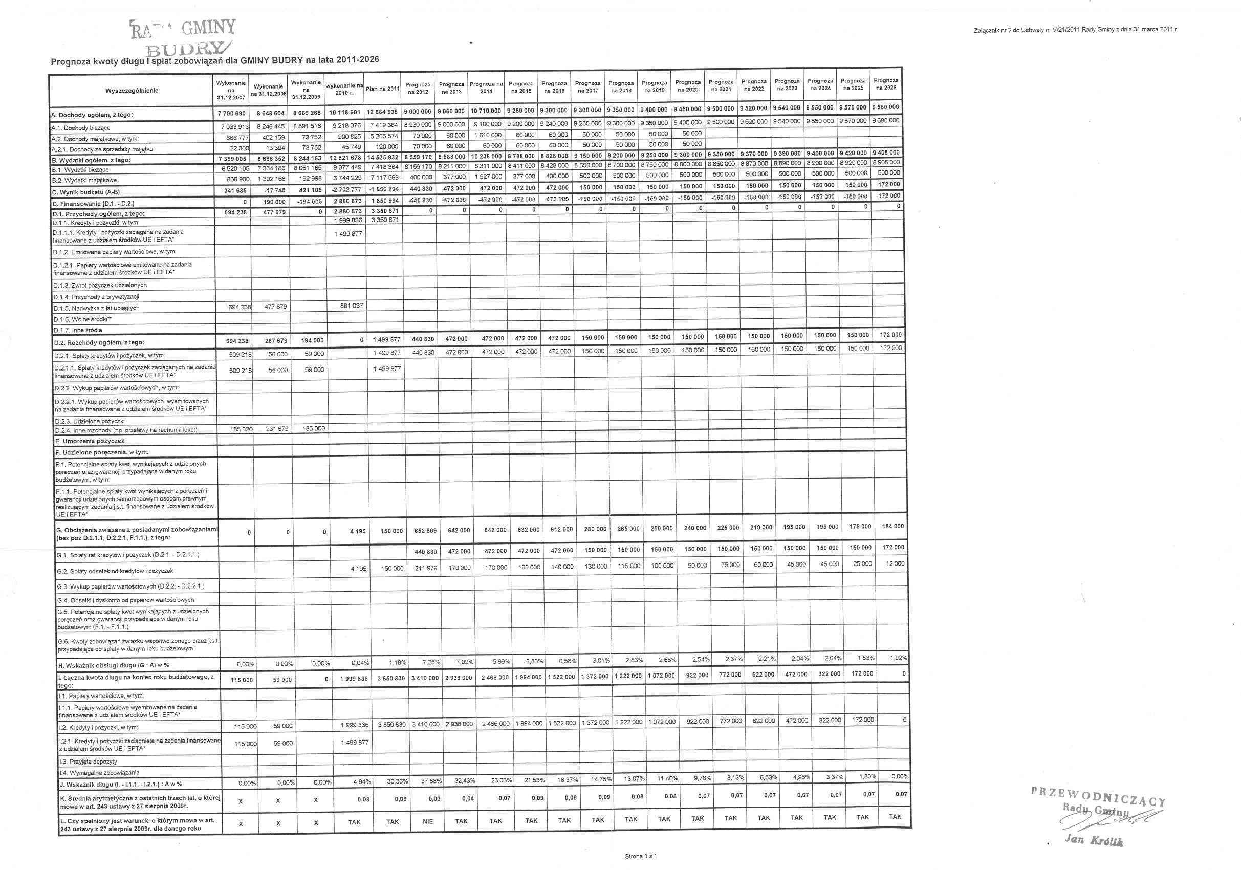 Załącznik nr 2 do Uchwały Rady Gminy Nr III/08/10 z dnia 30 grudnia 2010 r. „Prognoza kwoty długu i spłat zobowiązań na lata 2011-2026” otrzymuje brzmienie określone w załączniku nr 2 do niniejszej Uchwały.