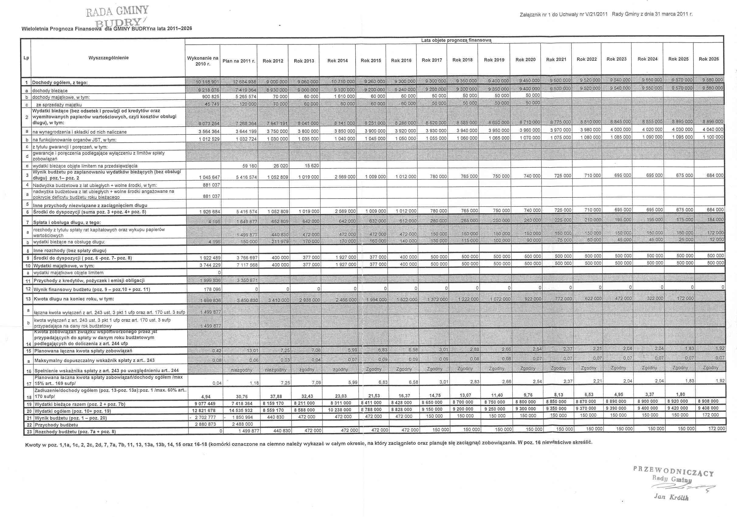 zmian w Wieloletniej Prognozie Finansowej Gminy Budry na lata 2011-2026