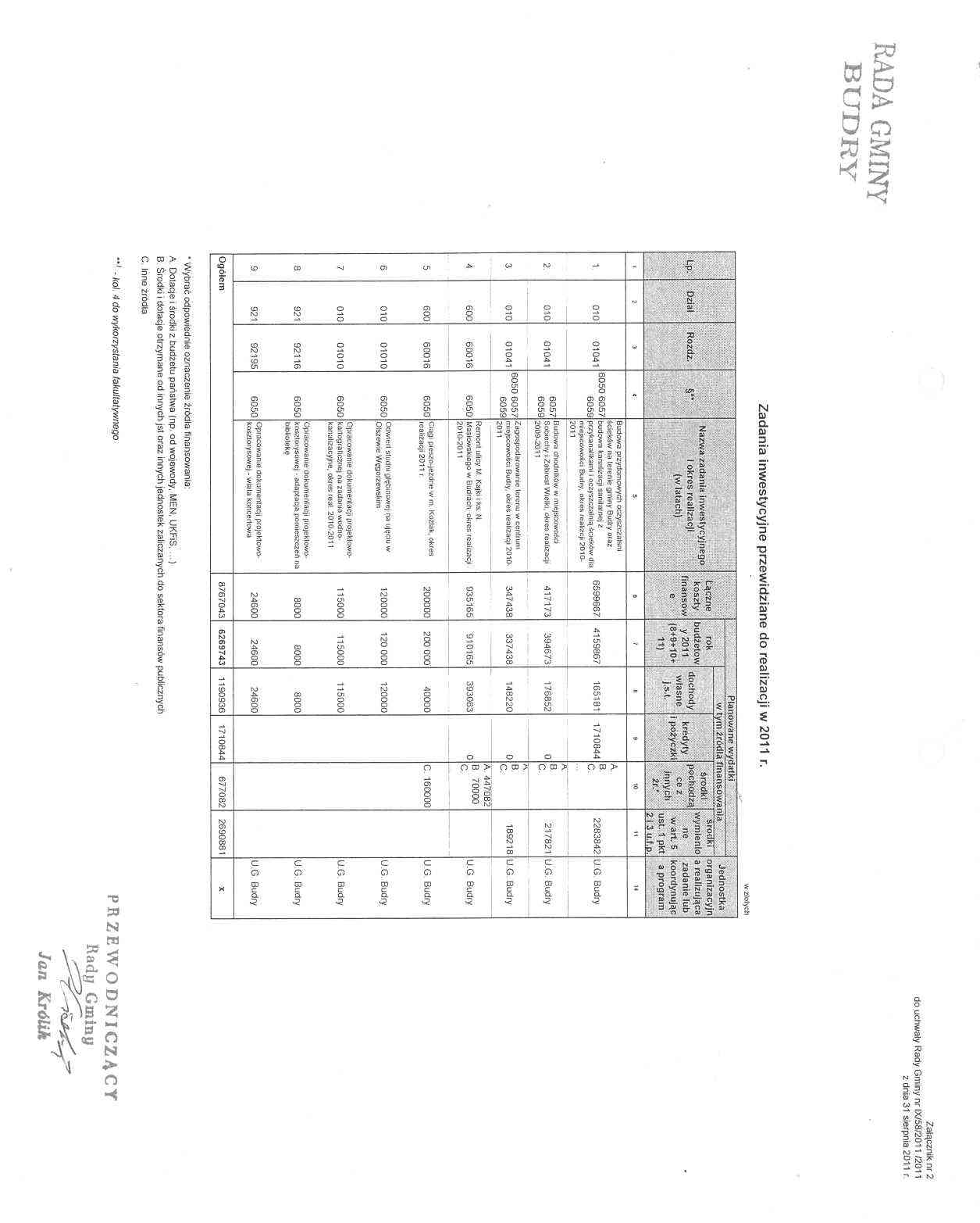 zmian w budżecie Gminy na 2011 r.