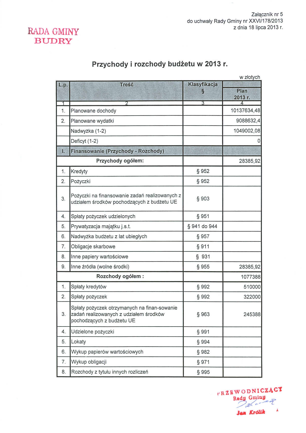 zmian w budżecie gminy na 2013 r.